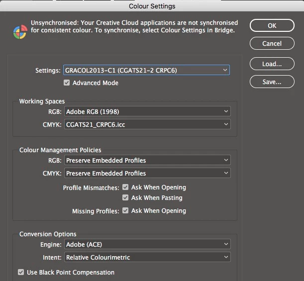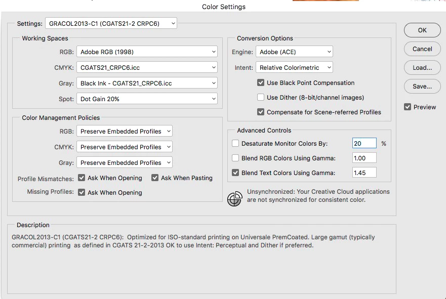 - I CAN manually choose any of the appropriate GRACoL 2013 profiles as my CMYK working space, but just didn't think I'd have to. I am not understanding properly here??