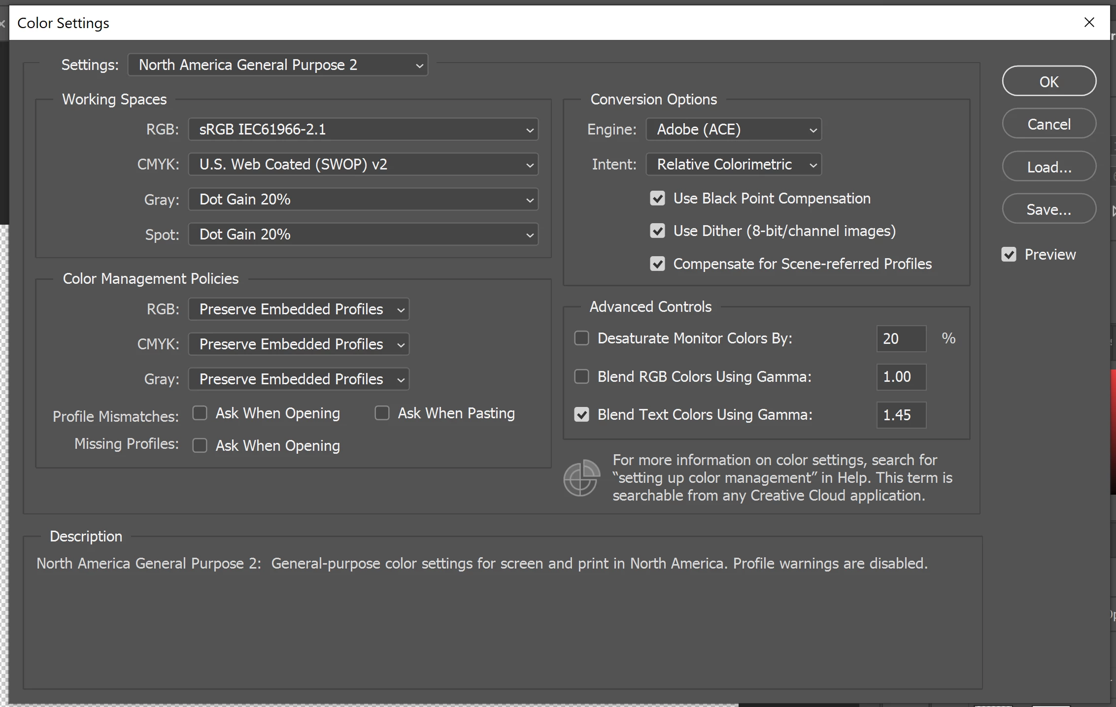 Using Dell, I got the ICC Profile invalid message first when trying to correct Photoshop’s color, I fixed it by moving the folders containing the color settings. When I updated Photoshop April or May, I realized I need to add gamma to my blend, but when I do that, I got the message again. Give me the list of solutions to take. I know solutions have been posted online but I’m lazy.
