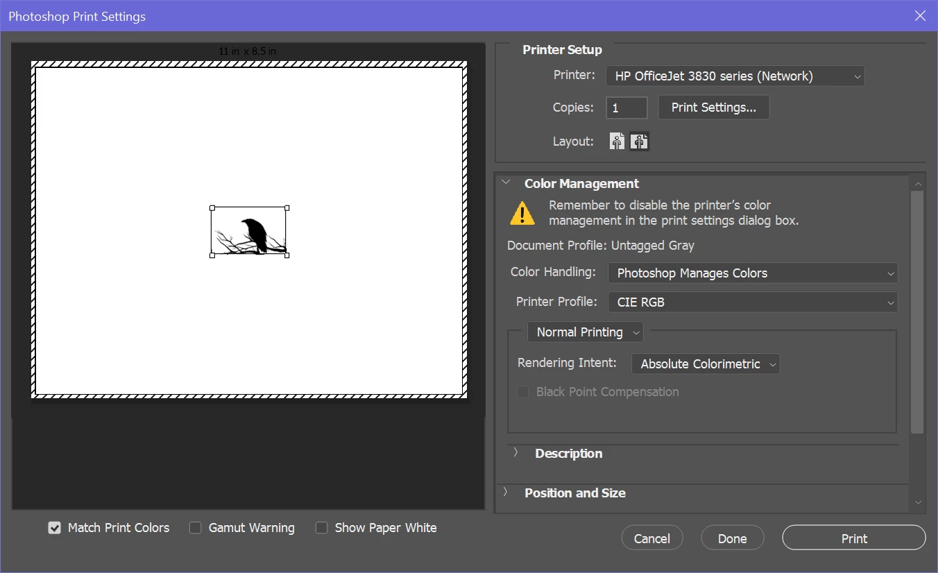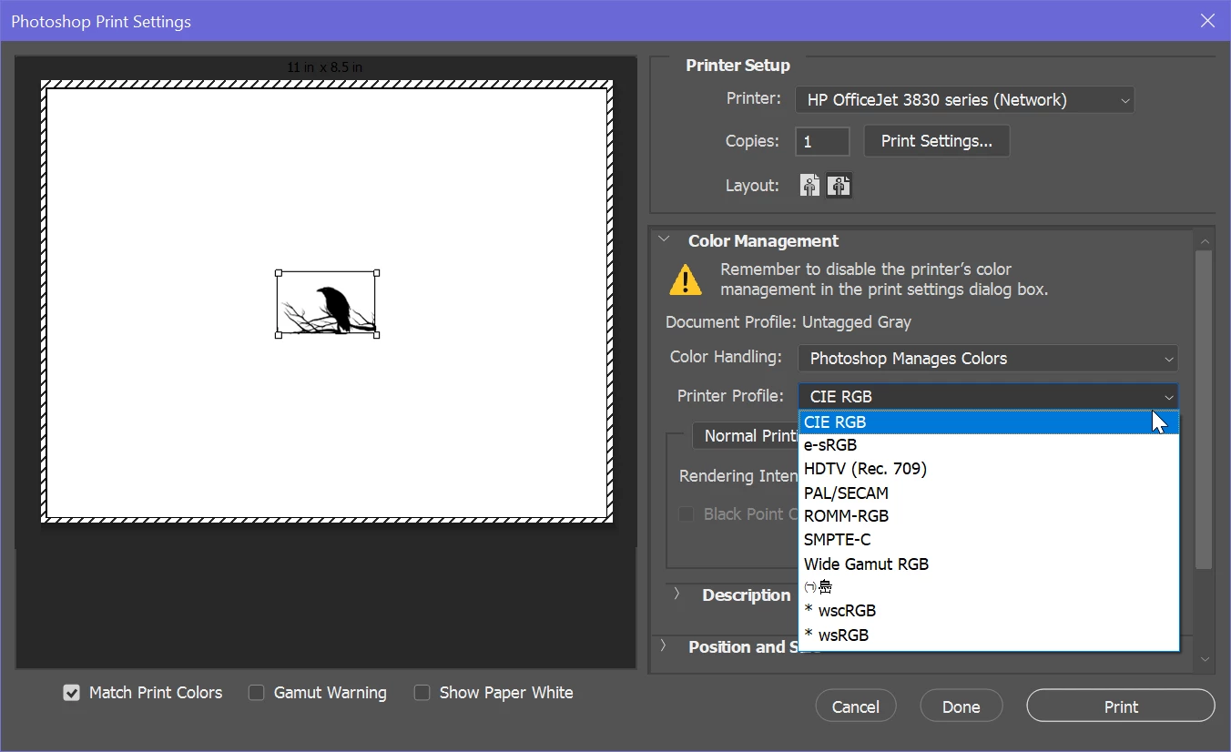 Hello All - I've read quite a bit on the forum about color management recently and this has helped a ton. The one remianing question I have is around disabeling color management from the printer side, as it doesn't seem clear to me if it is actually disabled or not on my side. Maybe I'm just missing something obvious as I'm new to the configuration, but thought you all may be able to assist.
