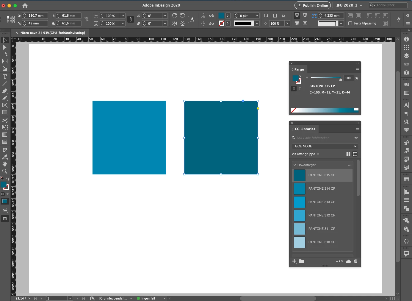 Pantone colours CC Libraries