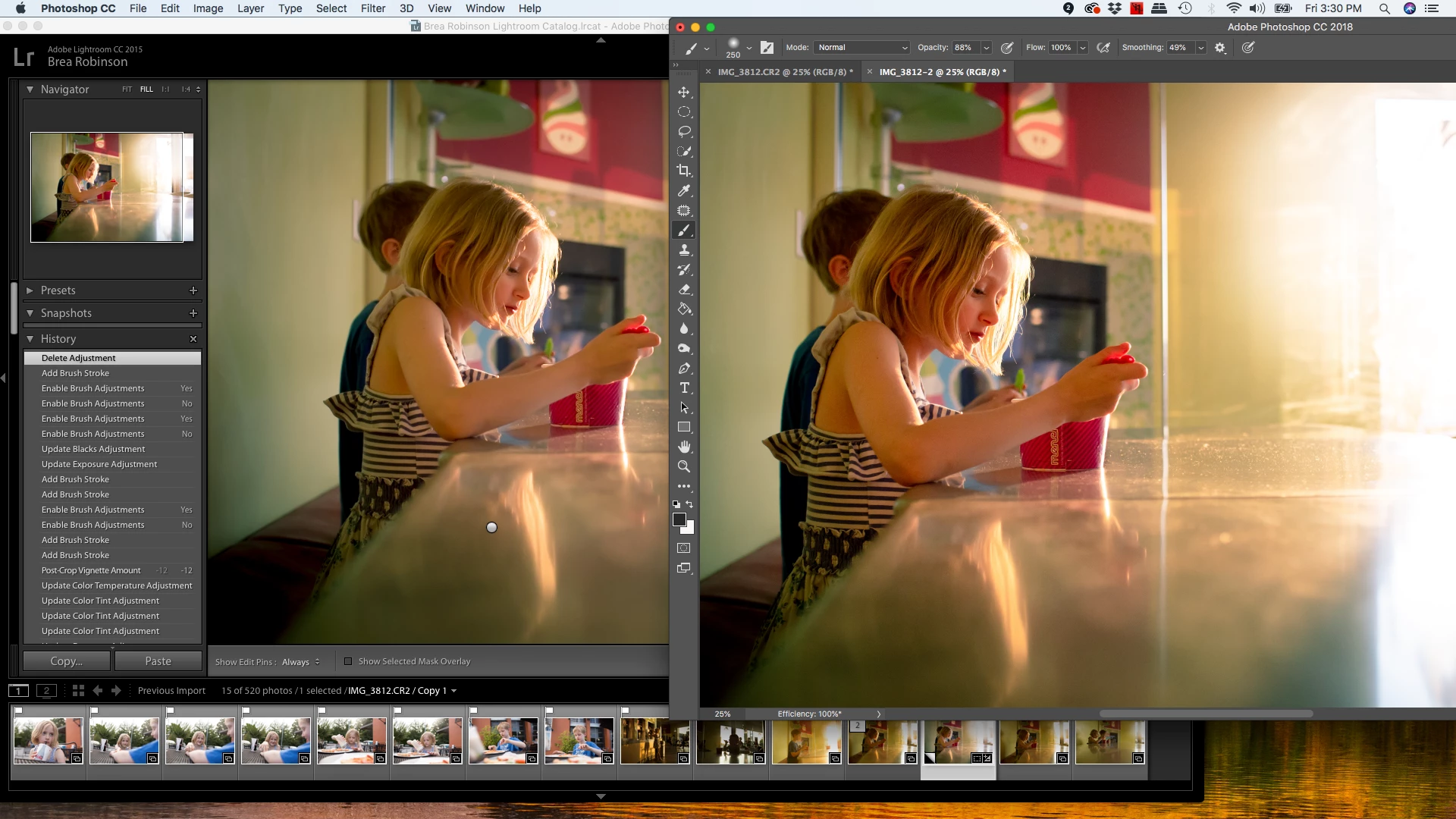 I am having a new problem, which is that when I open a file from LR (desktop version) to edit it in PS (right click - edit in Adobe Photoshop CC 2018) it appears red and overly saturated in PS. I have double checked and both programs are set for the sRGB color space. I tried uninstalling and reinstalling Photoshop and the problem persists. All my apps are up to date. Any ideas for me as to what is going on? Screen shot attached. The difference is subtle but noticeable to me, especially in the skin tones. Also, I am viewing them on the same screen. !.png)