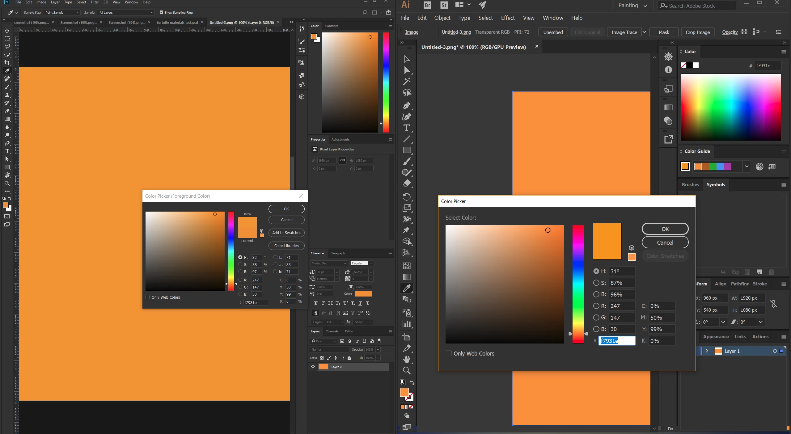 Colors don't match in different adobe programs (even though color settings are synced, color modes are the same, and they are being viewed on the same monitor).