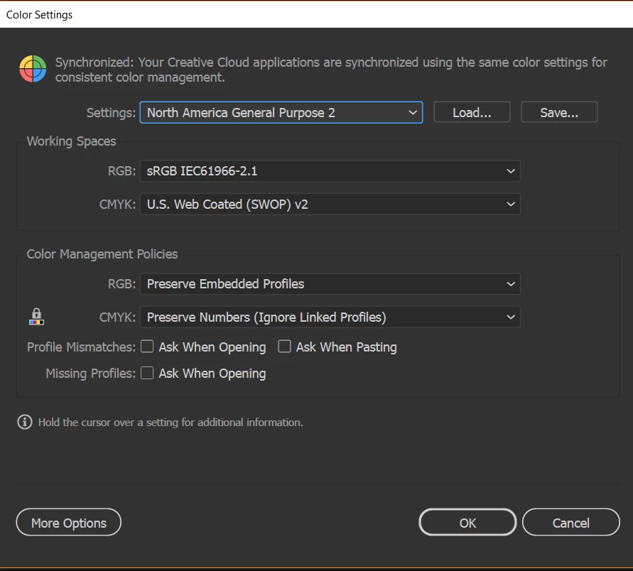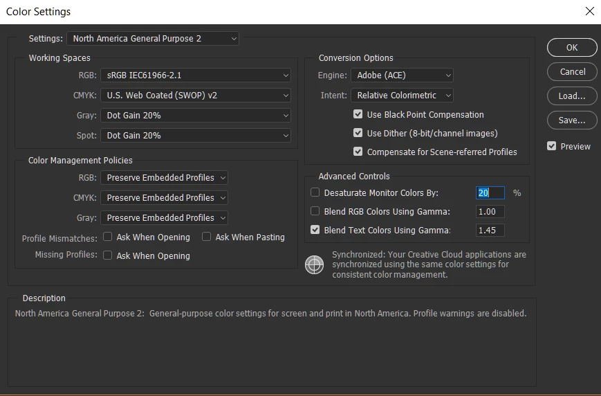 Photoshop color settings: