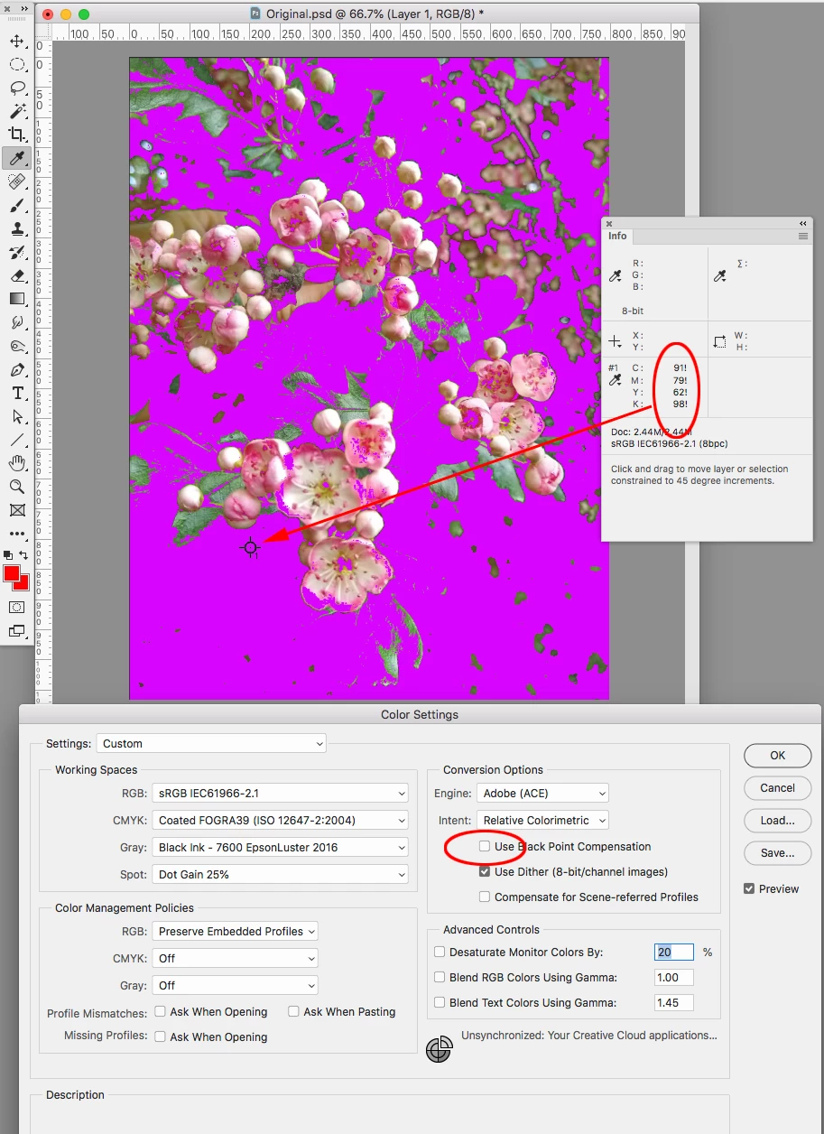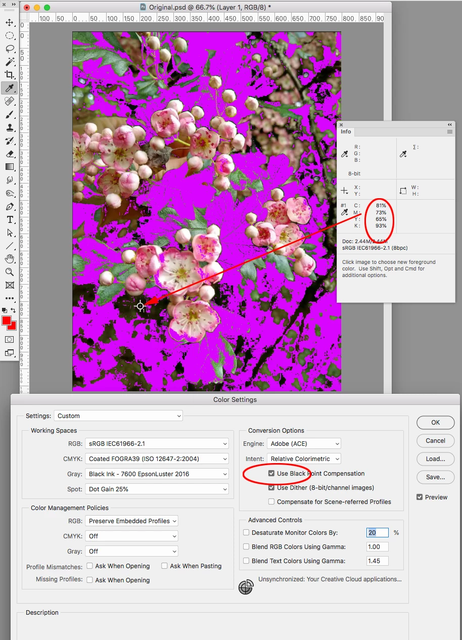 When I change 'Rendering Intent' (Color Sttings => Conversion Option => Intent) the size of the 'out of gamut' area changes (View => Gaumt Warning). Why is this? My undertsnading is that 'rendering intent' defines the method for handling out of gamut colors. I did not expect it to have any effect on which colours are in or out of gamut.
