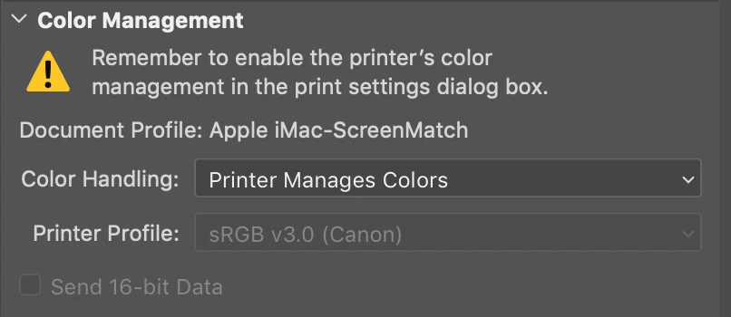 The images are printing sort of washed out, which I worked with the Canon rep to confirm that the printer is correctly reproducing colors. We tested the color on other colleagues' computers and they were able to reproduce accurate color.