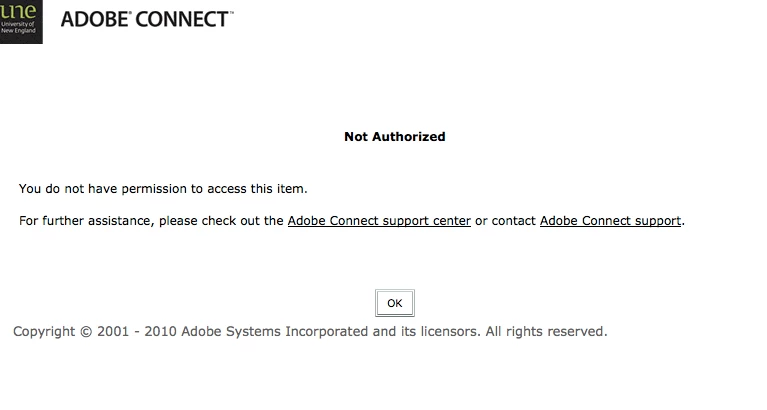 Access to previously recorded meeting in Adobe Connect - "not authorized"