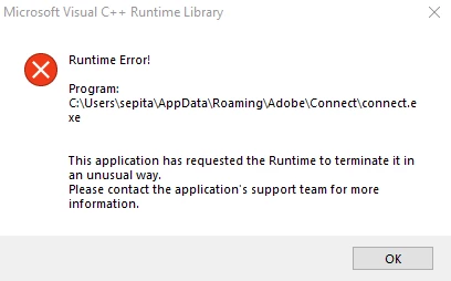 Adobe connect c++ runtime error