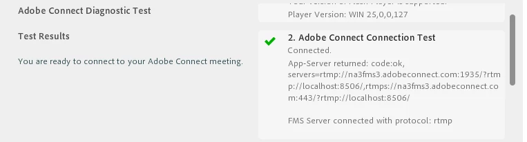 I have a problom with adobe connect connection test (step 2).