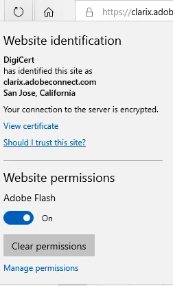 Intento abrir una grabación de una conferencia de la cual me compartieron la URL pero me sale el aviso Adobe Connect requiere Flash Player 13.0 o posterior, ya revise y flash player esta actualizado y activado pero sigue saliendo el aviso, he probado en Chrome y Edge y en los dos es la misma situación. Mi S.O es Windows 10