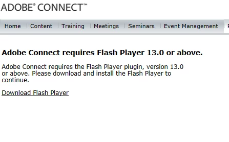 Adobe Connect requiere Flash Player 13.0 o posterior