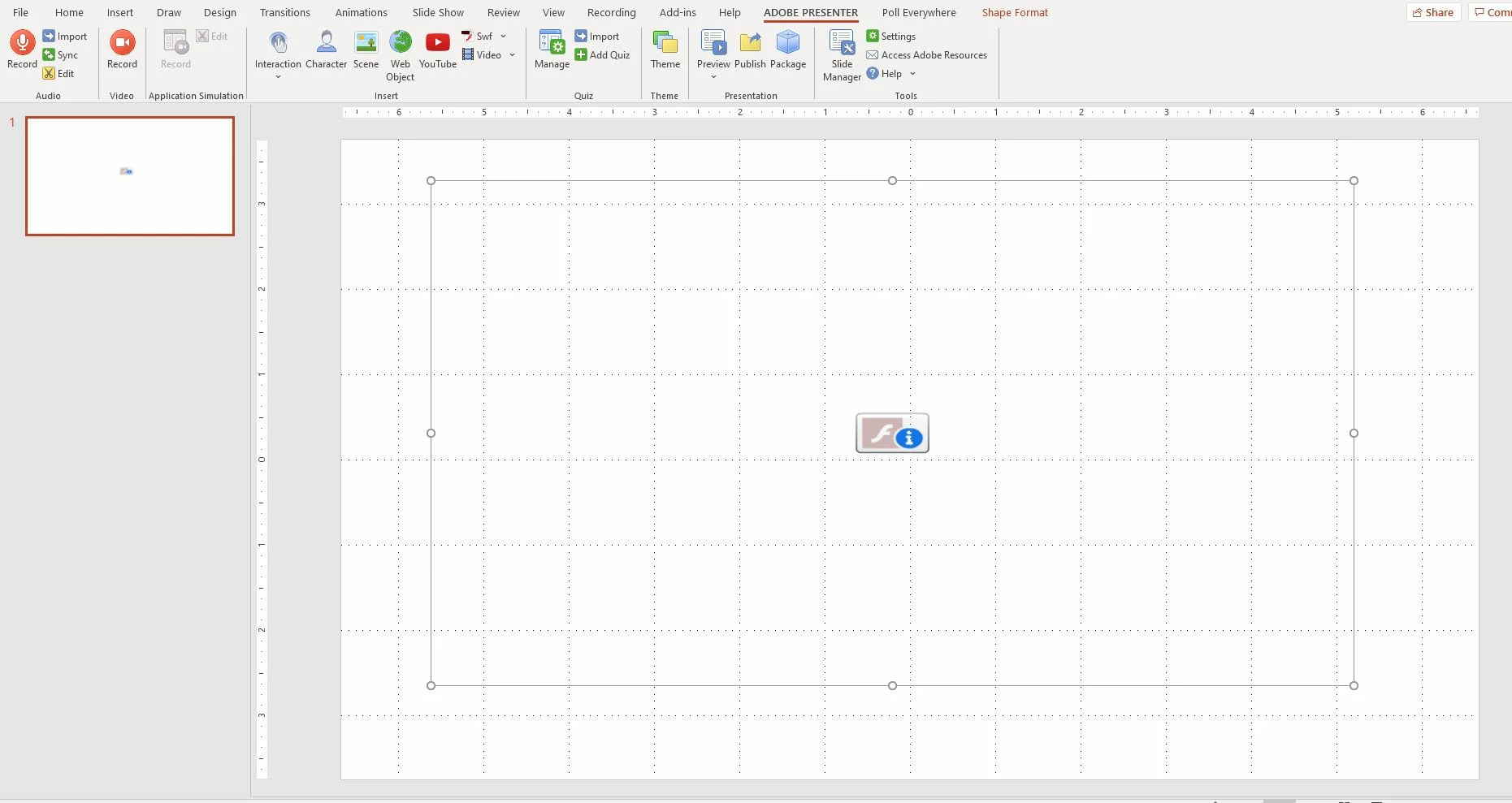 Adobe Presenter 11.1.5 Build 68 not working after Jan 12, 2021. After Adobe blocked all Flash contents on Jan 12, 2021, many functions in Adobe Presenter failed to load. For some reason, Presenter treats imported videos as Flash and blocked them with a flash icon display and link to the end of life page. The Themes are also inaccessible. I contacted support at Adobe on Jan 12. The tech could not figure it out and wanted to email me back. I am still waiting for a response.