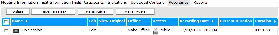 If you are asking if you can export a recorded session, then yes..simply choose the 'make available offline' option and it will download as a .SWF file