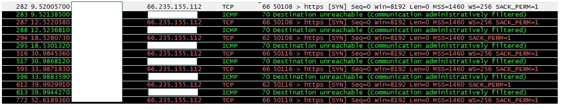 However in our case we have ACL's setup on our Cisco routing core (which do not allow this traffic), which in turn respond with "Destination Unreachable (Communication administratively filtered)".
