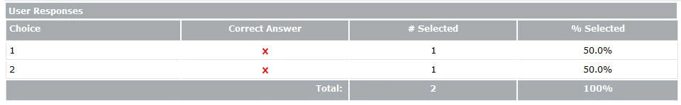 I'm new to Connect, and was just looking at some of the reporting features available. I went to the 'Questions' part of the Reports tab for a demo meeting I had run last week, and see all of the poll questions I had run listed. When I click on 'View Answer Distribution...' for a multiple choice type poll question under 'User Responses' where it breaks down each choice and the # of people who selected that response, it also has a column that says 'Correct Answer' and all of the choices have a red X (see screenshot below). I just went back into my meeting, and looked at the poll questions to see if somewhere I had missed setting a 'correct' answer option but don't see anything. Obviously for a lot of times a poll question might not have a 'correct' answer, but in this case I actually had setup the poll questions to function as a regular multiple choice question so there was actually a true correct answer.
