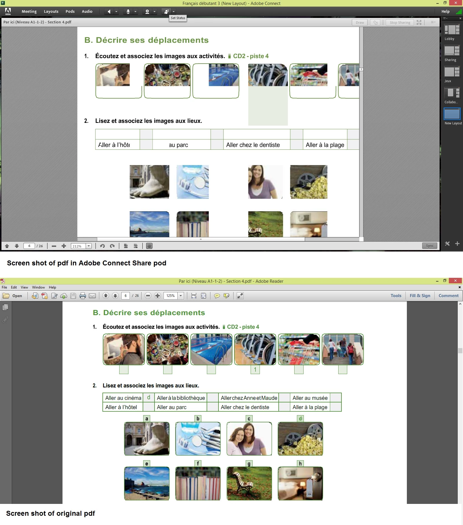 CCollège nordiqueParticipantForum|Forum|5 years agoApril 24, 2020QuestionDistorted PDF in Adobe ConnectForum|Forum|5 years agoApril 24, 20200 replies106 viewsHi, When I upload one of my pdf files into Adobe Connect, the image comes out distorted (see attached). Is there anything I can do to avoid this from happening? Frequent Adobe Connect User
