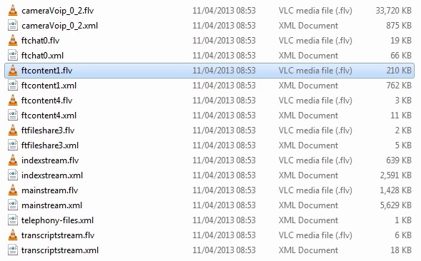 so, I get a .zip file with some .flv and .xml files but there only seems to be audio content, no video. The file i'm playing is the cameraVoip_0_2.flv which gives me audio, also the recordings i'm trying to download are 1.5 to 2 hours long so i was expecting much larger files than the ones that appear