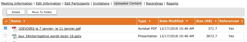 Is there an easy way to download all of the files from a meeting (not the recordings, but the files)? Under the meeting page is the tab for Uploaded Content. I can click on the file name which opens a page that gives me the "URL for Viewing" which I can then click on and download. But I really don't want to do three steps for all of the files that have been uploaded.