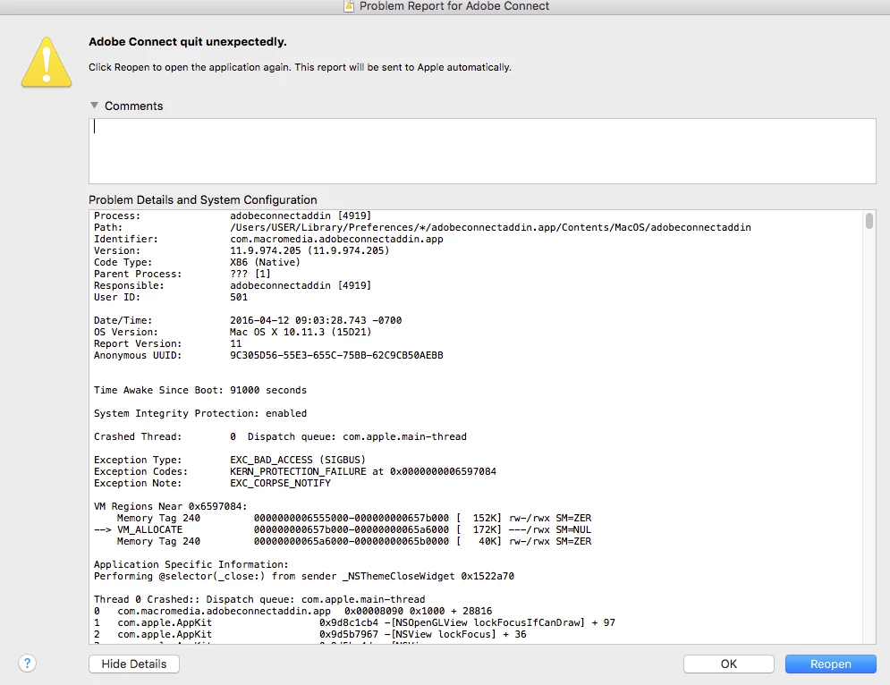 OS Version: Mac OS X 10.11.3 (15D21)