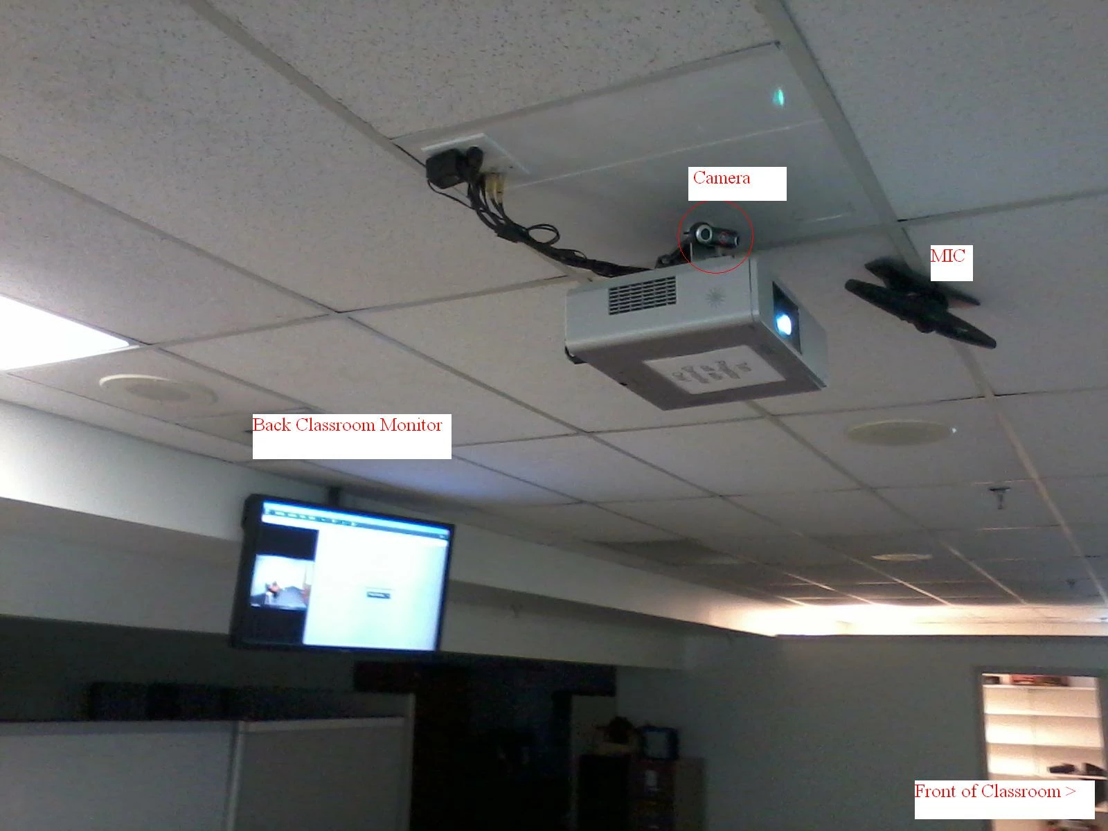 Here are some pictures I took earlier to give you an idea how we configured our main training room. The other training rooms just have one projector, and a camera mounted on the wall facing the classroom, so the presenter at the main facility can see them.