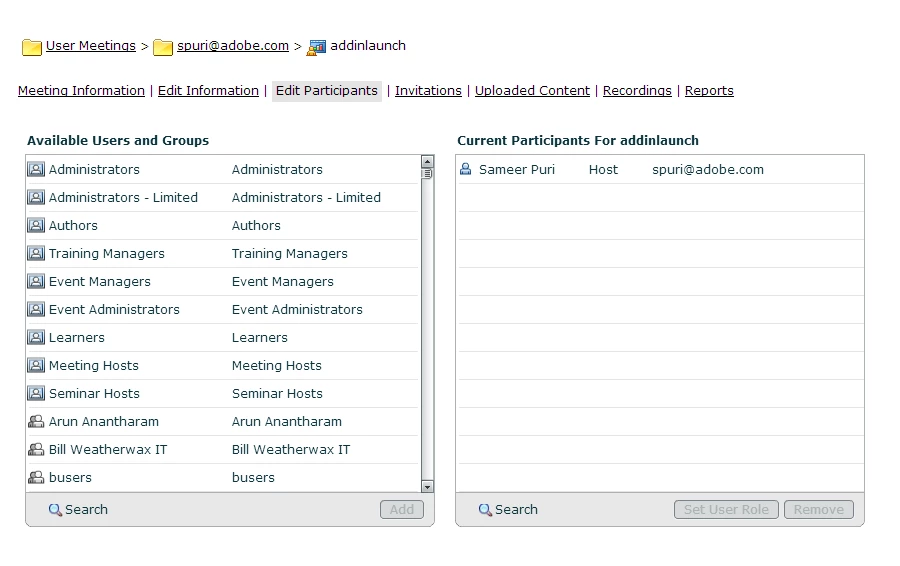 Btw, you can also change the role after the meeting has started. Just hover over the user name in the attendee pod and select make host in the hover menu that appears OR just drag drop the user to the hosts in the attendee pod.