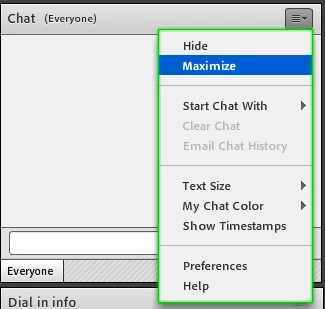 In the middle of a business chat, our chat pod suddenly resized to cover the entire layout. So far I have not found a way to resize it back to its smaller size, as there is no way to "grab" a corner and make it smaller. When I tried to fix it by making a new layout, the updated layout worked for about a minute, and then the chat box again took over the screen (even when I was in Presenter Mode). Please help! Below is a screen shot.