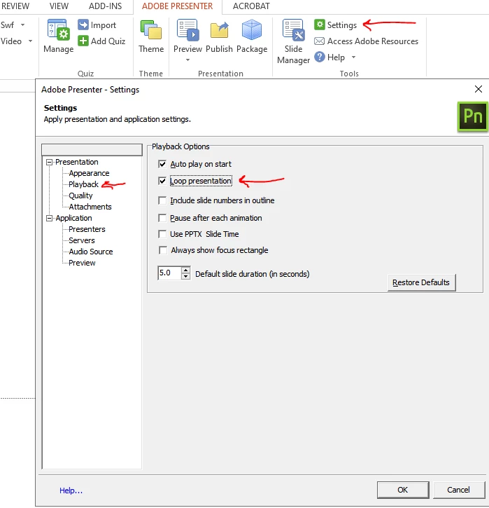 This PPT was uploaded to content, downloaded as zip and changed in the file to have it looping (previous workaround for looping on adobe with flash player). Is it a limitation of the HTML/standard view?