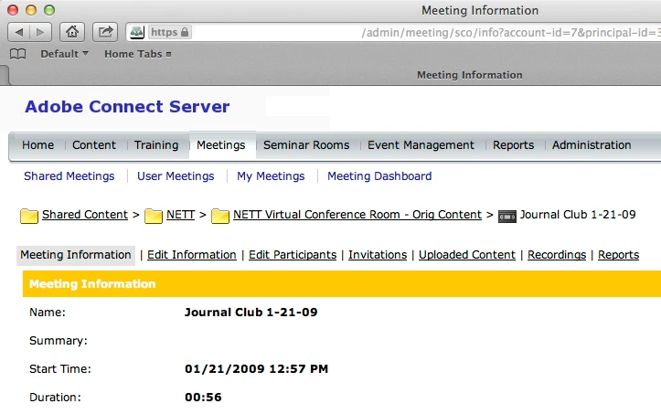 Is there another mechanism Adobe Connect discerns between the content and meetings so far as under with view/interface it will be displayed? Is there a way to correct this behavior for existing files? Thanks for any insight.