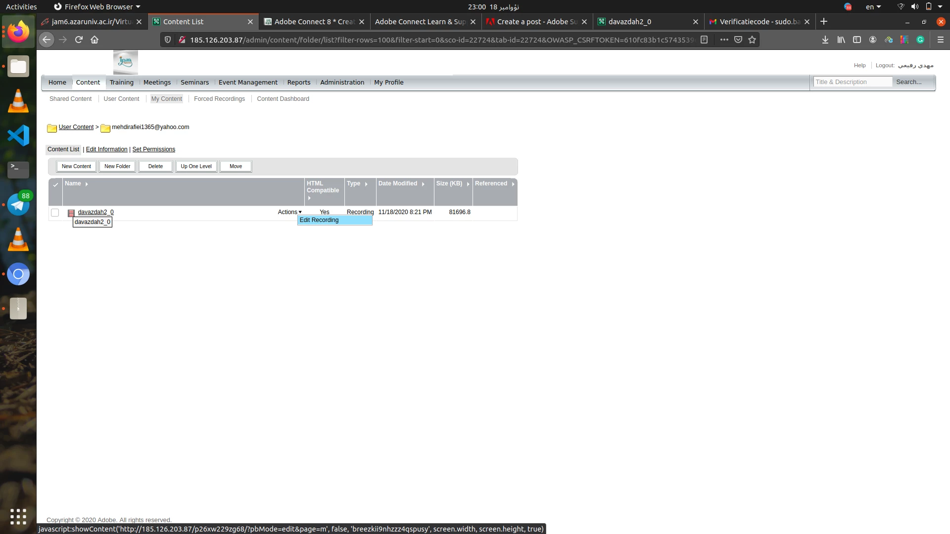 I want to upload the recorded file of the classroom in the University sites CMS.