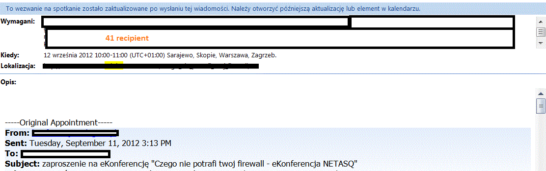 Hello, I need information. If I invite participants to a meeting and send them an email (with ical), whether it should include in the TO all the addresses of participants and invited each individual should get just one email address in the TO?