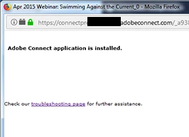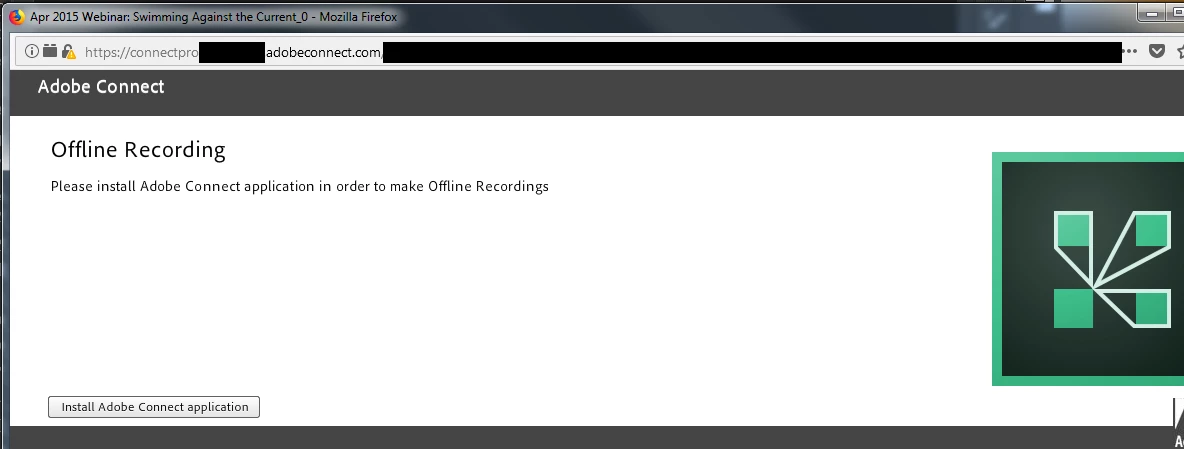 I am trying to use the "Make Offline" feature. I have the Adobe Connect application installed and up-to-date, am assigned as host, the recording is set as public access with passcode. When I select the "Make Offline" feature, I get a popup window and enter the passcode, then jump to this screen:
