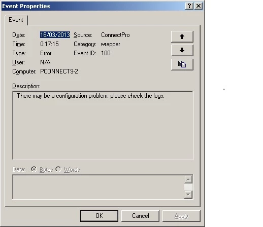The Adobe Connect Service Stopped. Errors in event viewer.