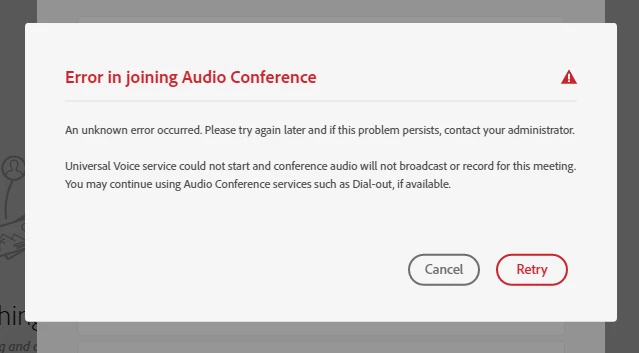 Unable to start audio conference