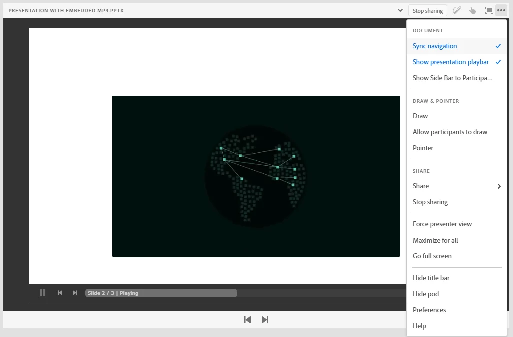 Hi, I have a PPT presentation that I load to Connect. It has embedded videos that have player controls in PPT, but those controls don't show up in Connect. Is there a way to add them or save the PPT so they show up there? Thanks!
