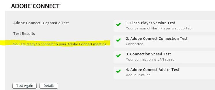 Answer is "You are ready to connect to your Adobe Connect meeting."