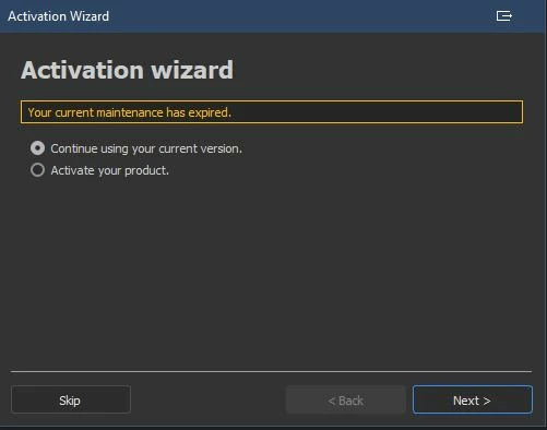 activation wizard window while having a perpetual license
