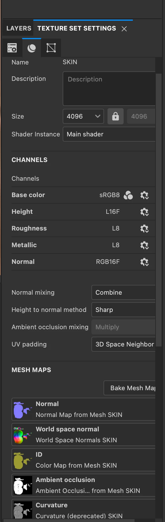 When I finish baking, I have no controls for HSV, tiling, scale, height, etc. Usually there are some things I can tweak, but now it just shows all these maps and those weird L8 and L16F things
