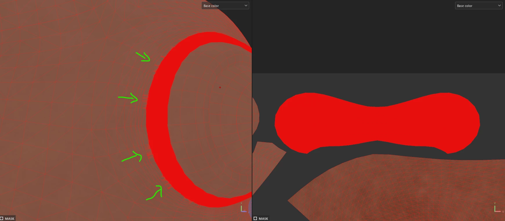Why I try to make a mask based on a UV island by using polygon fill I'm getting these weird stretchy lines rather than a clean edge. Any ideas on how to fix?