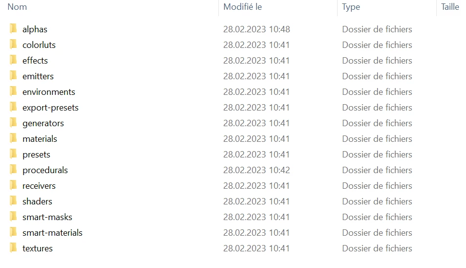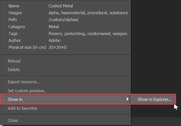 You will see in Explorer a folder by Substance 3D Painter category (smart-masks, alphas, materials, etc.). Make sure your assets are not in multiple folders.