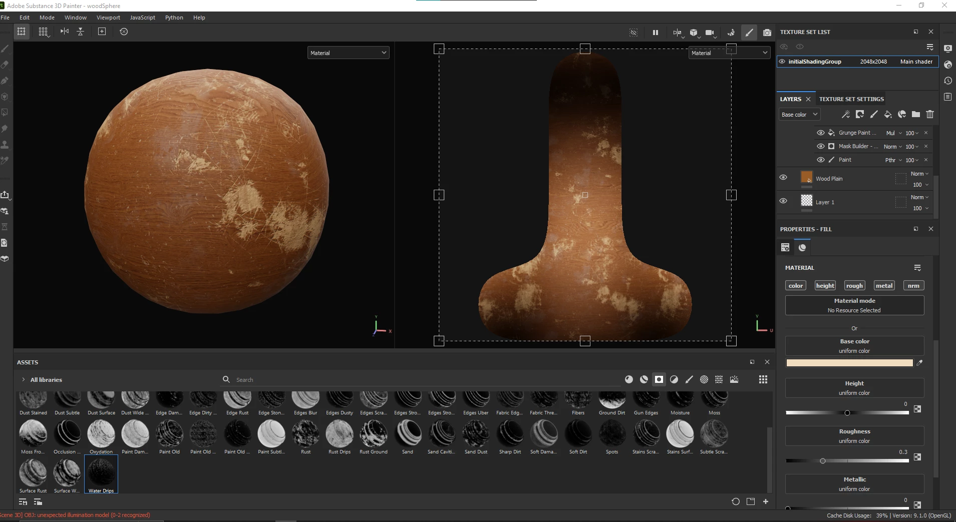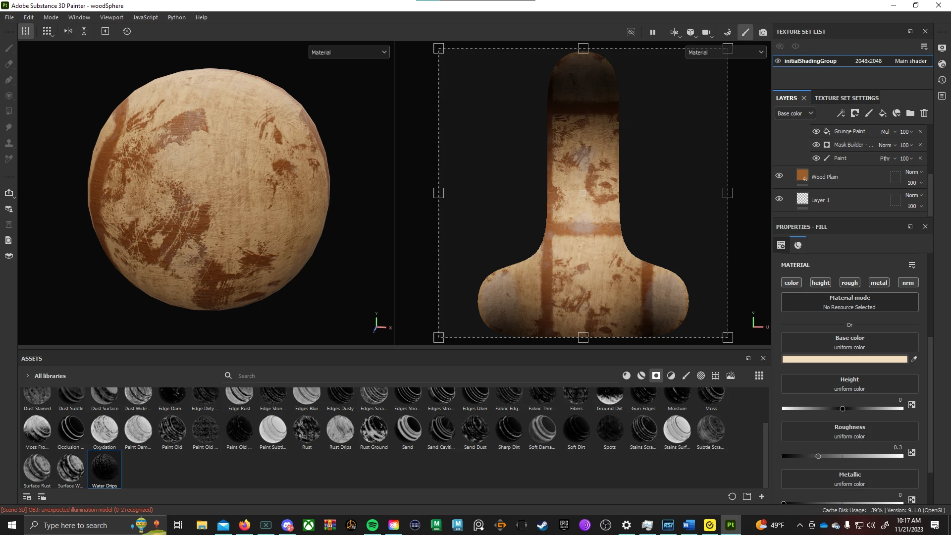 When I imported the model, which is a basic cubesphere from Maya as an OBJ, I got the error " [Scene 3D] OBJ: unexpected illumination model (0-2 recognized) ". In addition, when I try to bake my texture maps, this happens: