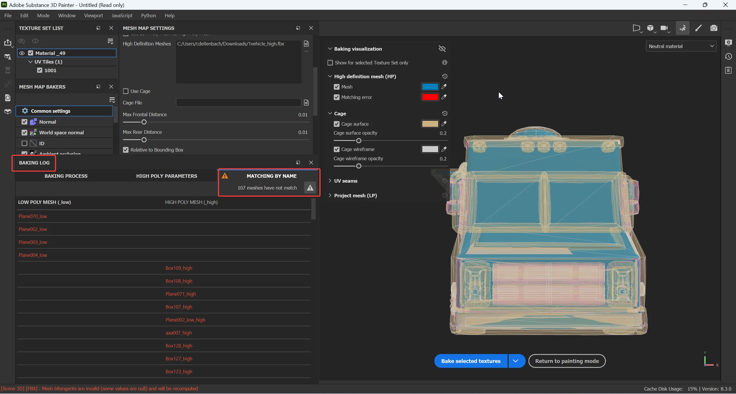 I can't get my high to bake on my low right. It seems to bake slightly. but there are roung edges. some doesn't bake at all. I used match by mesh name. every proportional mesh is the same exact except _high and _low. I have tried all with front and rear distances.