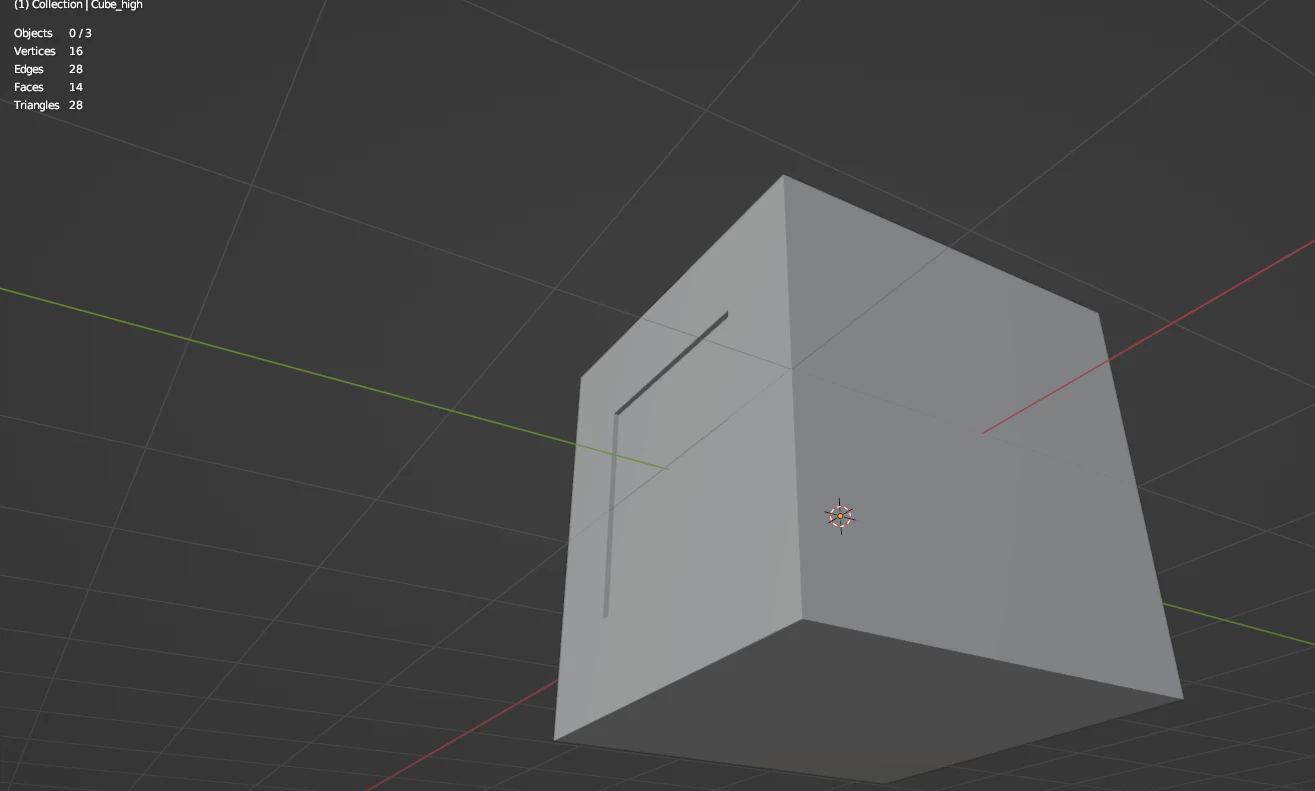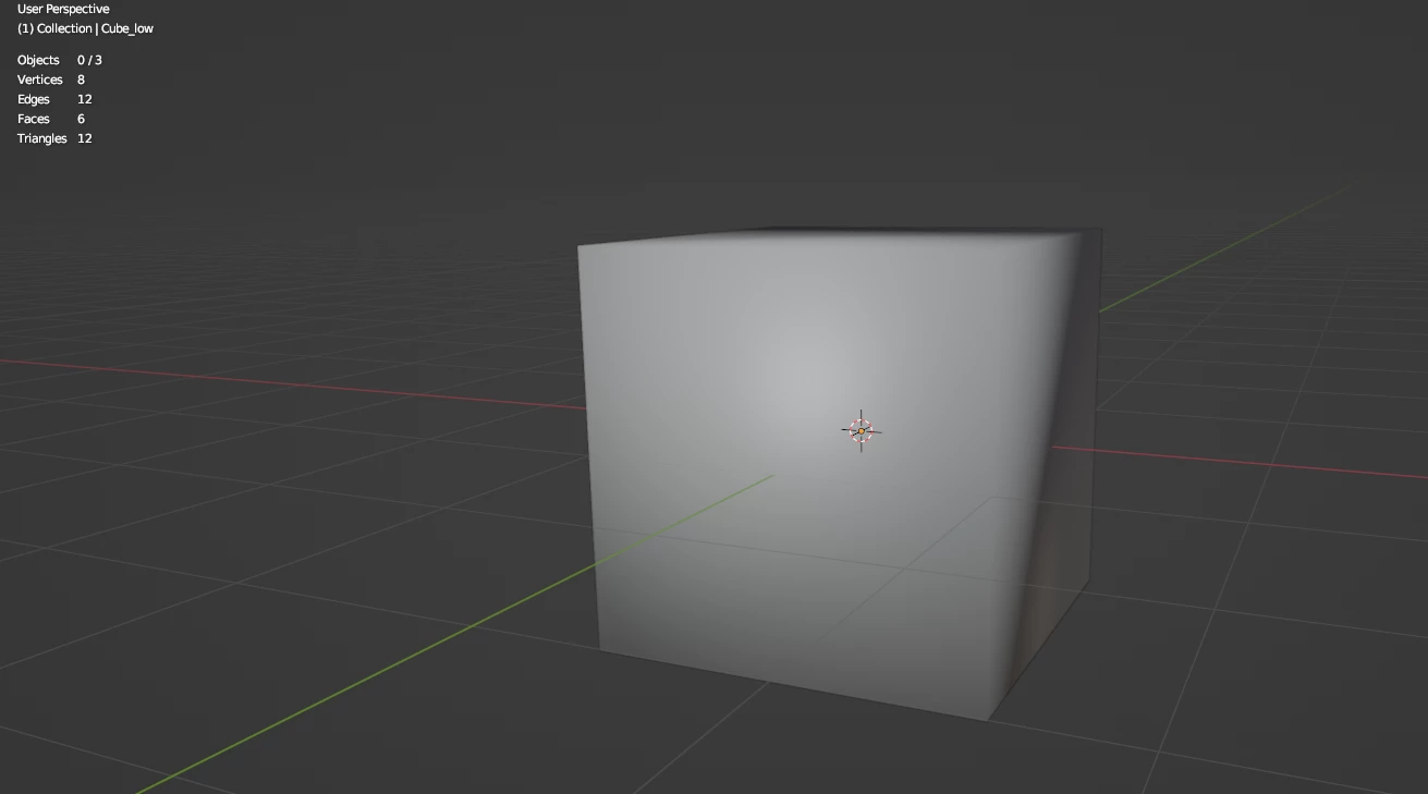 We can see how it shade smooth and how many tris it has. Now i have a this cube with a small push that I like to bake on to the first cube. Here is the high poly one and it tri number