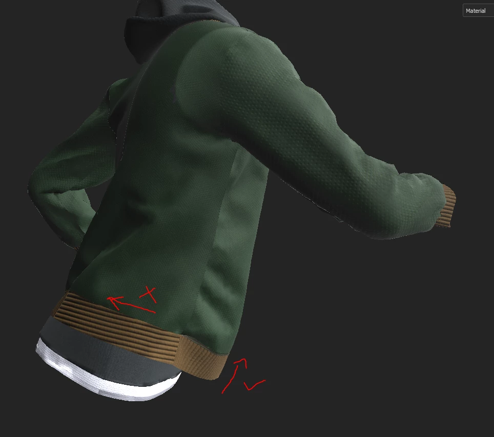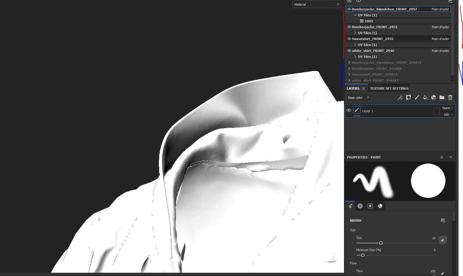 So now my question: How can I solve this. When I re-create the UV map in Marvelous Designer I am sure I will need to re-import the mesh to Substance Painter and I would re-create all the layers again, is this right? Or can I just re-import the UV map after the changes are made to Substance Painter in any way? Do I need to re-bake the maps in Substance Painter then? Or can I somehow tell Substance Painter to change the orientation of the texture for this one part of the mesh only?
