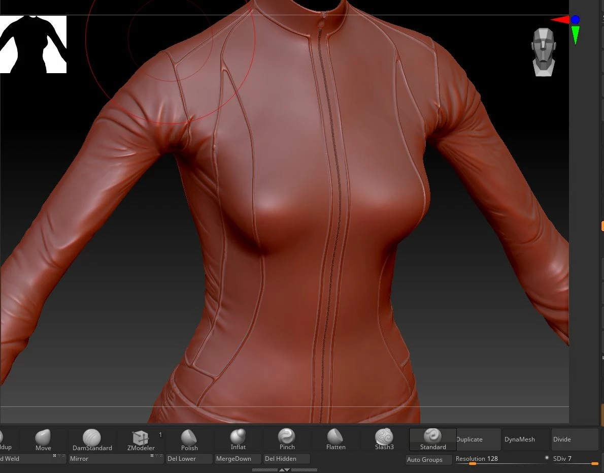 1 - Project the zipper over the jacket with mediocre results in zbrush and use it as a single mesh, for wich i'll need some ID map latter on to apply some different materials in substance