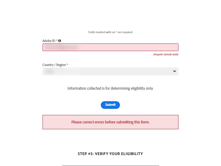 I get a bug on step 2 telling me my ID already exists,