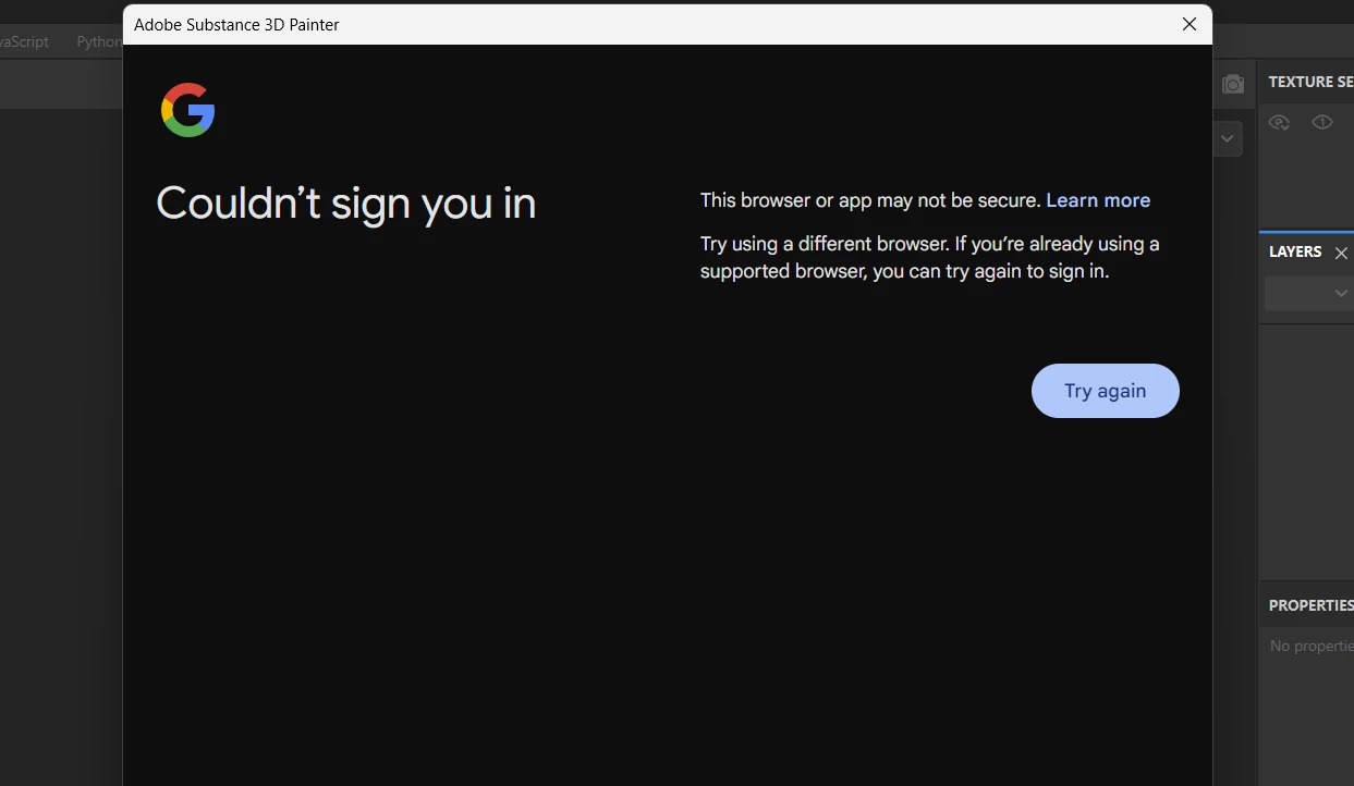 Can't log in to Substance Painter with my google account