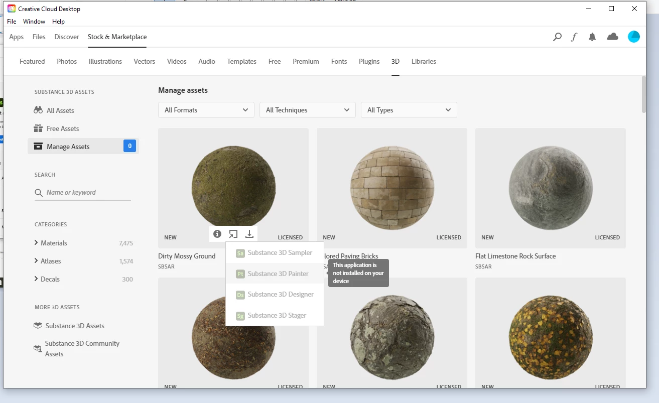 I am subscribed to substance painter and cant use the "send to app" feature in the creative cloud app to send marketplace materials to it