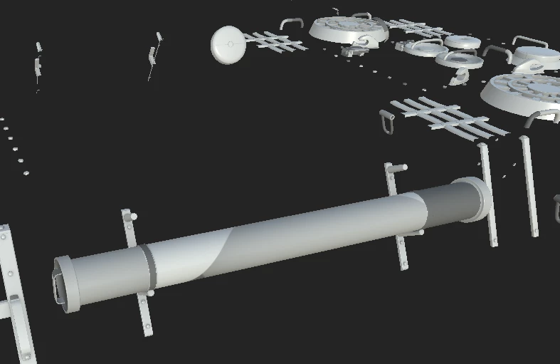 This is all one object where I took multiple objects and combined them to fit on one texture sheet. Importing the model goes well. But after baking I get this strange distortion. Adding layers of materials do not cover up these distortions. If you look closely you can see the blotches end up on other parts as well. I do this because importing the whole model at once is guaranteed to cause this problem. Since I started breaking the model into textures I haven't had this issue but here it is again and I have no idea how to solve this problem. Can anybody help? To clarify the long tube above and everything else in the picture should be just one color.