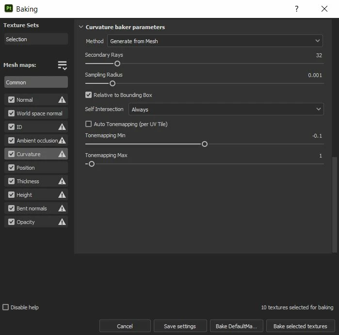 My problem is as follows; my curvature map never seems to be baking right. Some edges get highlighted, while others don't even get noticed. I've tried tweaking the settings a bit but nothing. I also can't find anything wrong with my UV unwraps or the meshes themselves. I've included screenshots of multiple assets for visual reference.