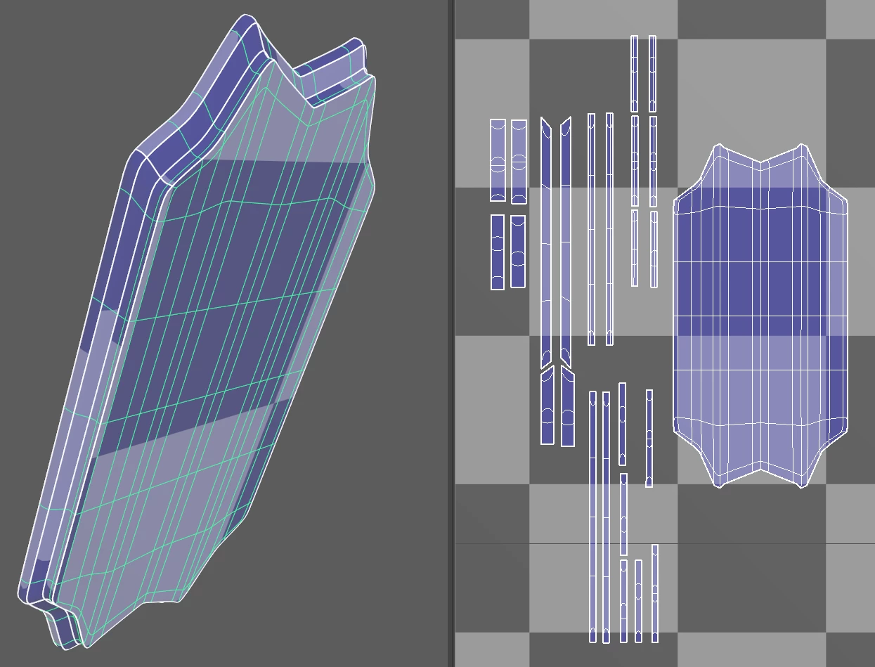 I have a model in Maya and UVs for it. This is far from perfect, but I have no experience in modelling, so that's the mesh.