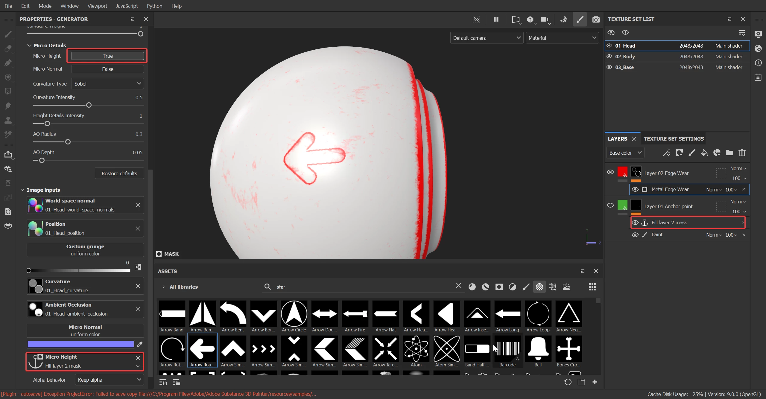 2. Add a new Fill Layer and the Generator in a mask. Under the Micro Details parameters, turn on the Micro Height and finally select the previously made Anchor point in the Micro Height Channel